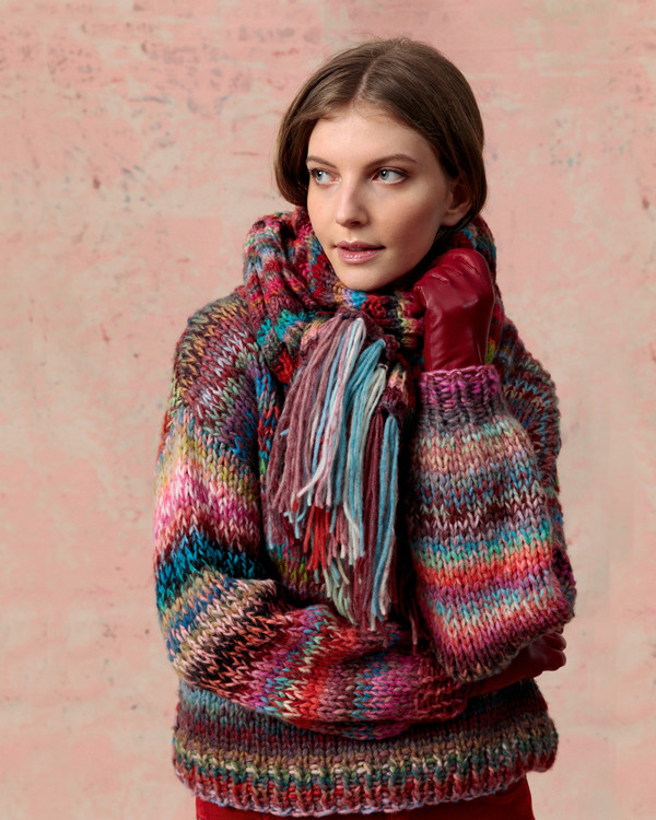 Stricken Sie diesen farbenfrohen Pullover aus dem Garn Cloud von Lang Yarns.