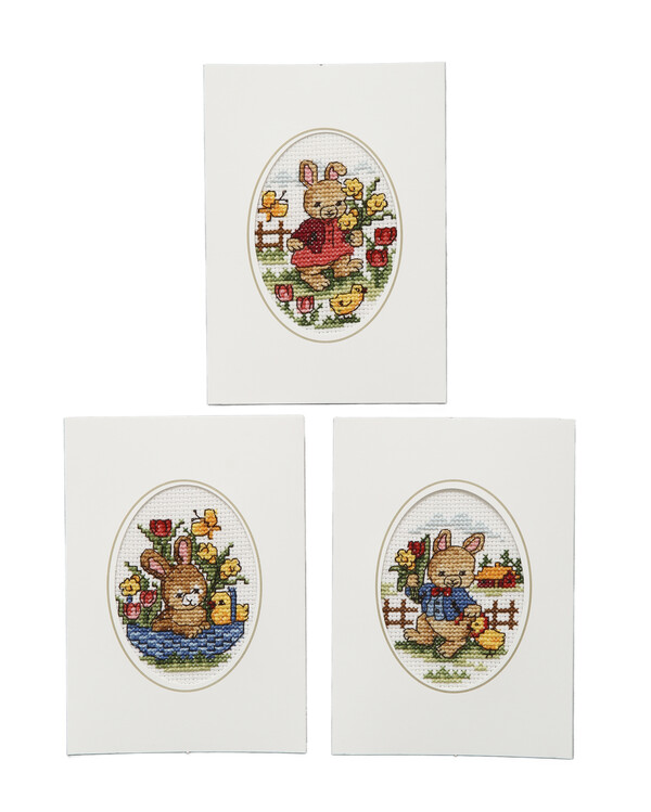 Stickpackung Karte Fröhliche Osterhasen 3-er Pack