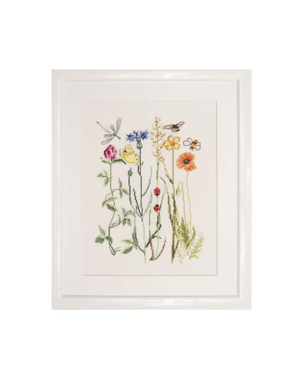 Von der Natur inspirierte Motive sind ein Highlight in Thea Gouverneurs Kreuzstichkollektion. Dieses schöne Kreuzstichmotiv zeigt Wildblumen und Insekten.
