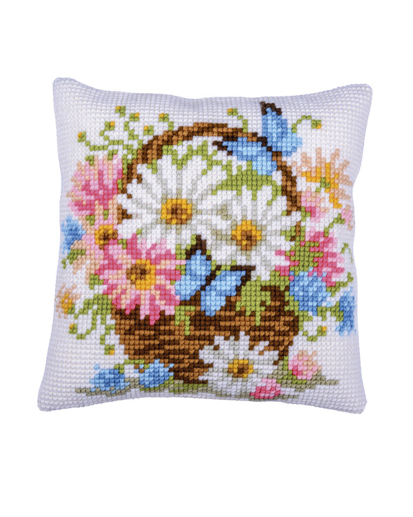 Stickpackung Kissen Blumen in Korb