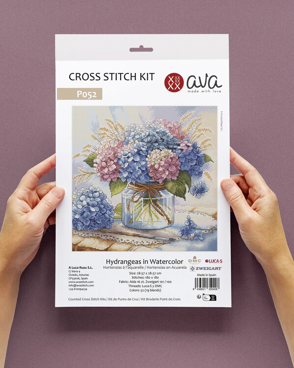 Stickpackung Bild Hortensien in Aquarell