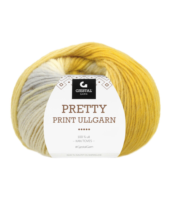 Pretty Print Wool-Garn von Gjestal Garn ist ein vielseitiges einsträngiges Wollgarn in wunderschönen selbstgestreiften Druckfarben. Perfekt für die Herstellung von Pullovern, Strickjacken, Mänteln, Mützen und Schals, die einen zusätzlichen Farbtupfer erhalten.